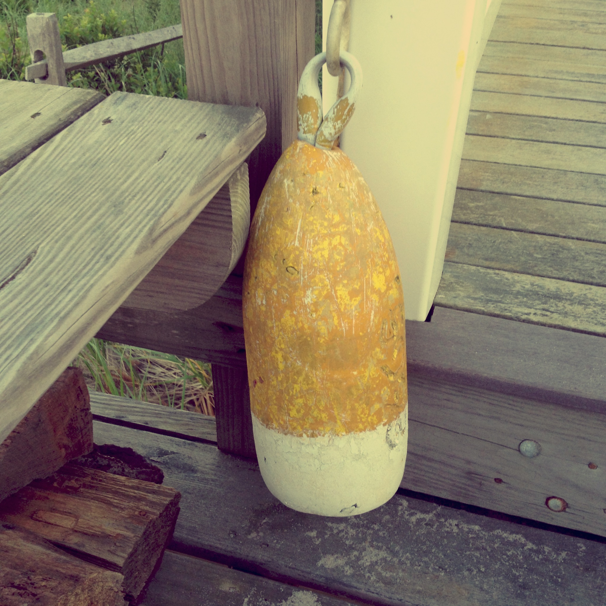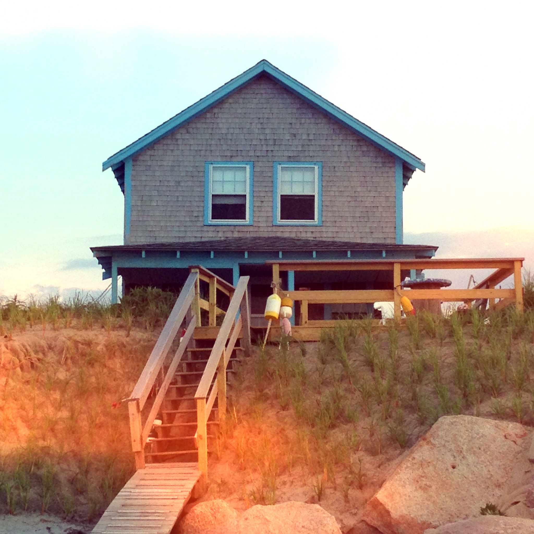 I fell in love with this little house just a little way down from ours. I walked by it a few times and could just picture living there. That beautiful Cape Cod-style home with its unpainted shingles weathered to a perfect grey, the blue accents, the buoys hanging off the deck. It was small and sweet and a little shabby. I WANT IT.